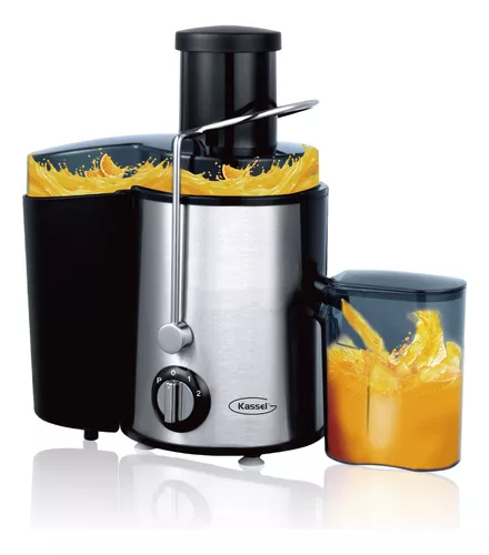 Diseño moderno de acero inoxidable. 100% extracción de jugo. Con recolector de pulpa. Velocidades: 2 Fácil de limpiar. Potencia: 1000 W. Vaso: 500 ML.