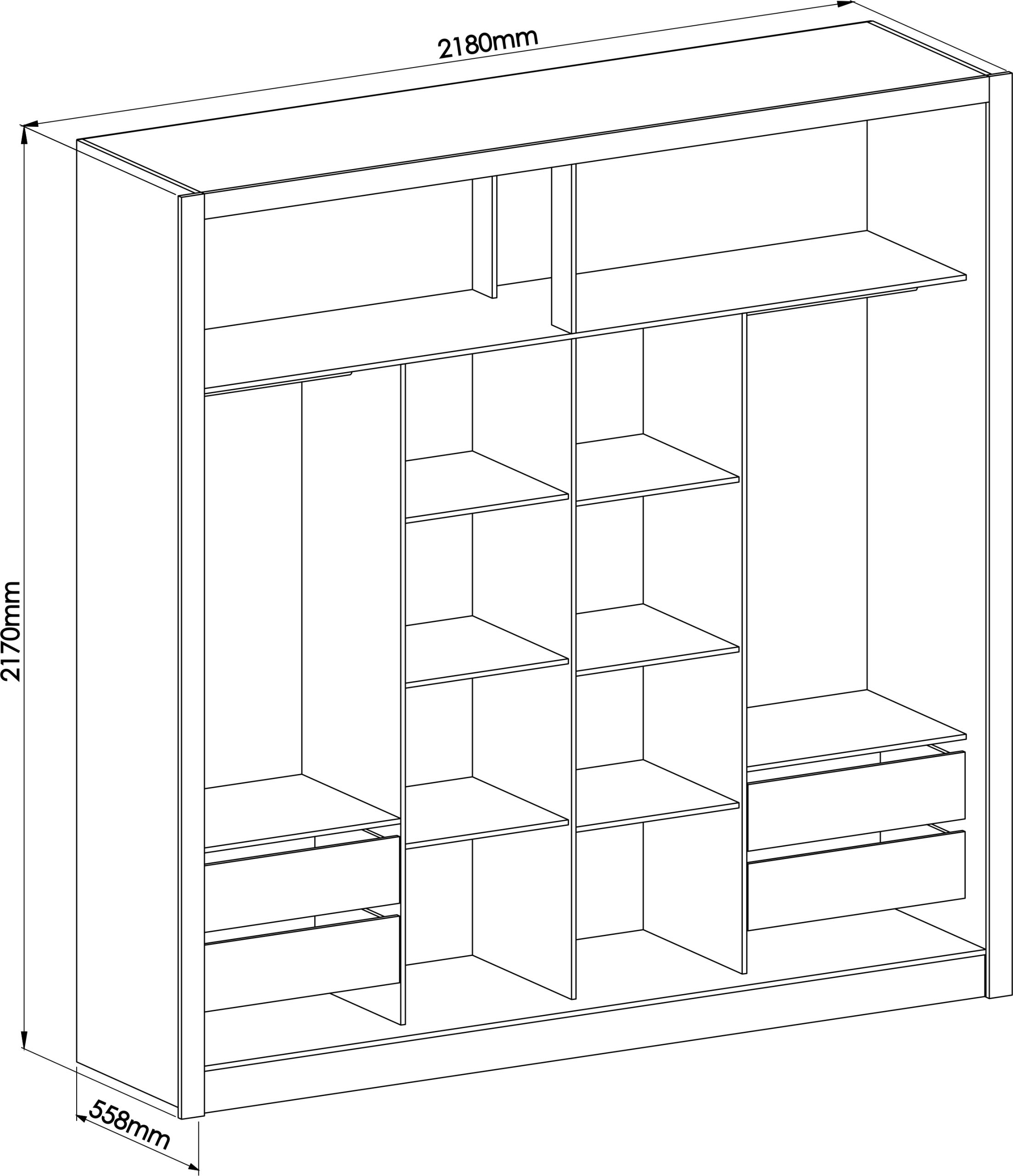 Medidas: 2170 x 2180 x 558 mm (alto x ancho x prof)