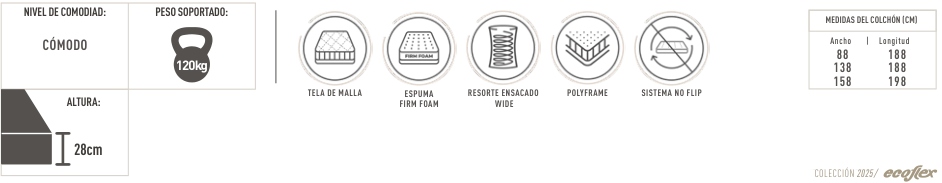 Sistema de borde de espuma de alto soporte, que aporta mayor firmeza en los laterales de los colchones, aumentando la zona de descanso.
