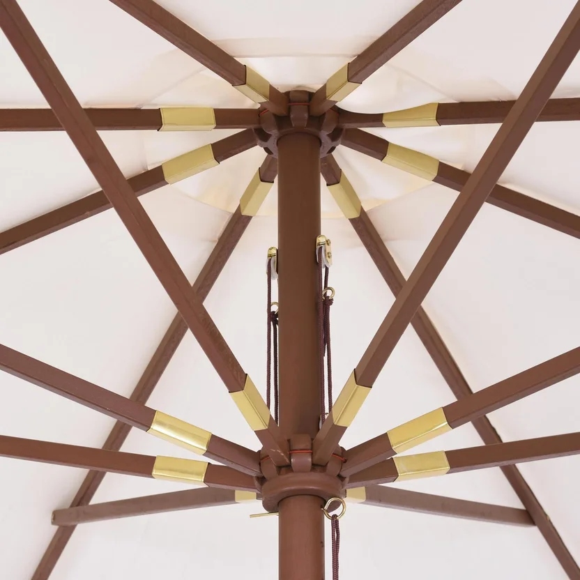 Esta sombrilla está fabricada en madera de alta calidad, lo que le da una apariencia natural y resistente. Su estilo industrial le aporta un toque moderno y sofisticado a cualquier espacio.
