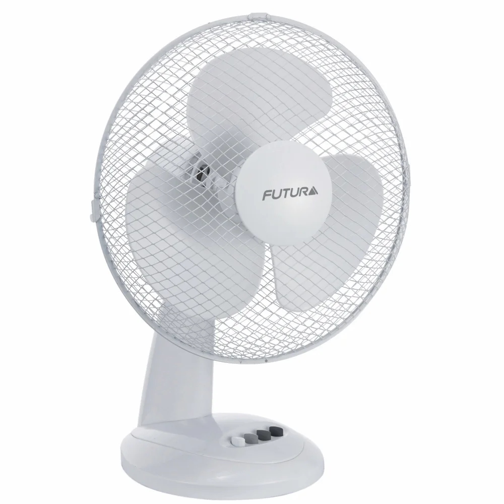 Modelo FUT-30G Diámetro 30 cm Potencia: 40 W 3 aspas Cabezal oscilante 180° 3 velocidades Parrilla panal de abejas